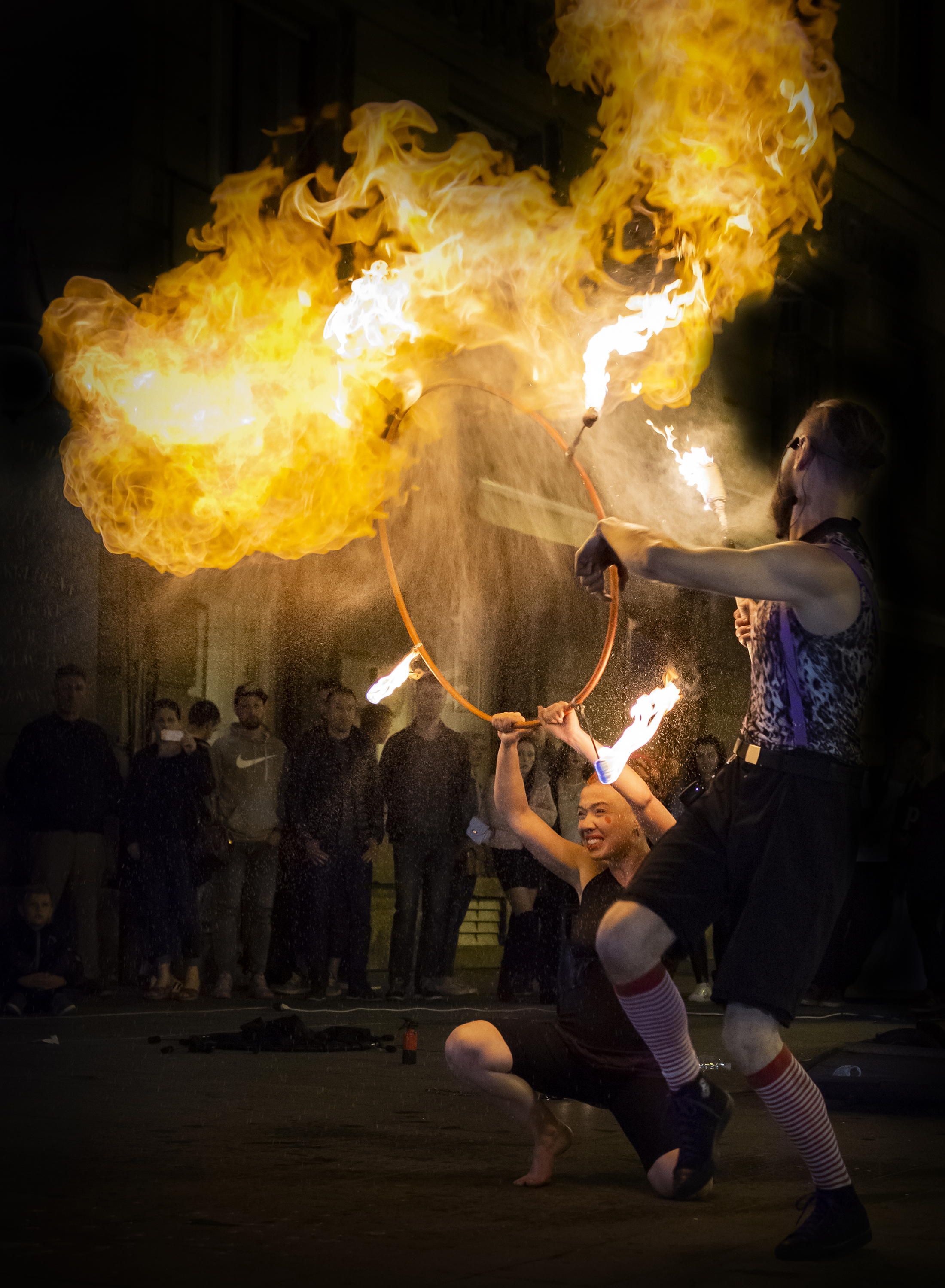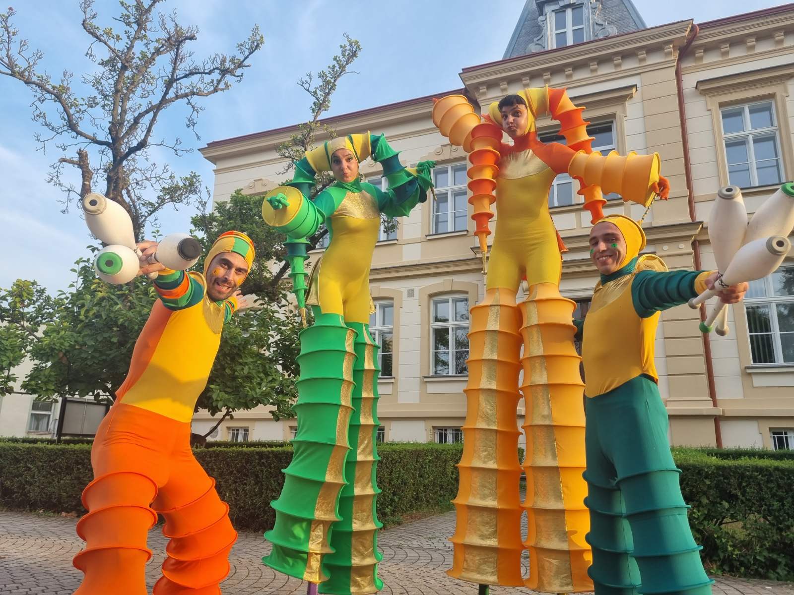 We are specialized in interactive performances like walkabout acts, greetings, children animation and street performances, street fire shows and juggling shows. But we can also make spectacular stage performance and circus cabaret at the request of the client.